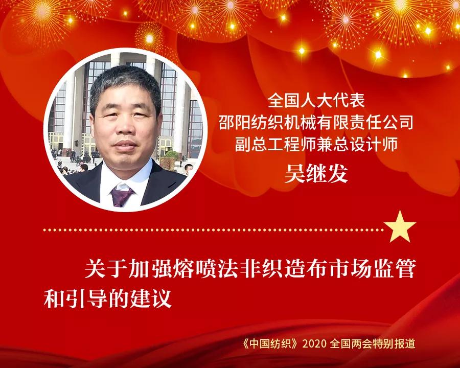 吳繼發:一是建議國家的各地市場監督管理部門加強對熔噴布及口罩廠的口罩檢查的頻次和力度,質量要達到國家或行業的標準要求。