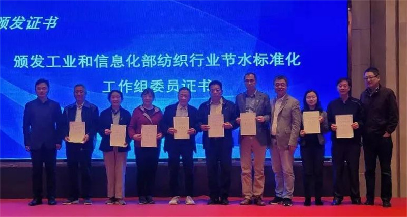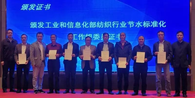 程晧、中國紡織機械協會總工李毅、中國水利水電科學研究院處長馮杰共同為工作組成員頒發工業和信息化部紡織行業節水標準化工作組委員證書。大會公布了2020年度紡織行業節水型企業名單,程晧與世界自然基金會上海區域辦主任任文偉為12家獲獎企業頒獎。