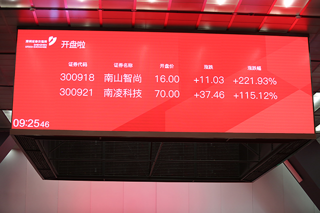 12月22日上午9點25分,煙臺市委常委、副市長,市政府黨組副書記王中、中國銀河證券股份有限公司總裁陳亮、山東南山智尚科技股份有限公司董事長兼總經理趙亮敲響開市寶鐘,南山智尚在資本領域獲得公開認可,迎來企業發展的新階段。在深圳證券交易所,政府代表、行業領導與商界精英齊聚一堂,共賀南山智尚成功上市。