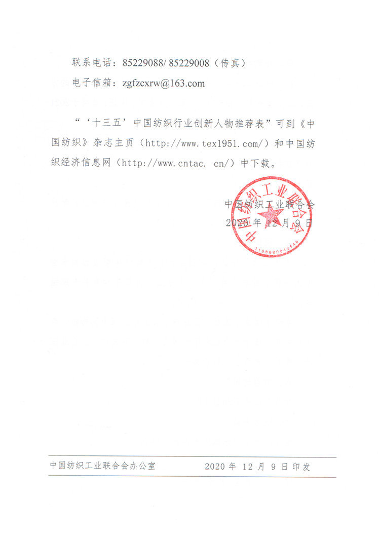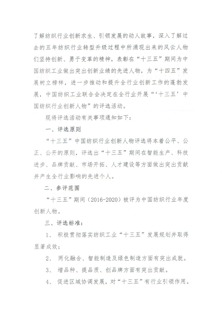 關于開展“十三五”中國紡織創新人物評選活動的通知
