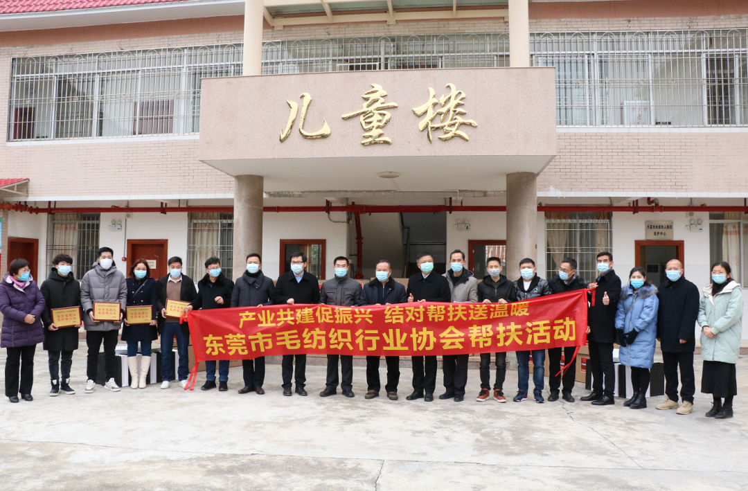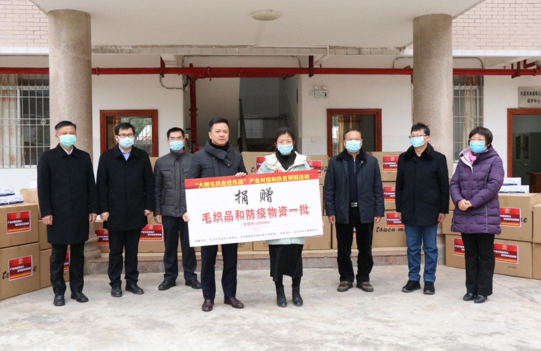 1月11日上午,“大朗毛織走進樂昌”產業共建幫扶活動的捐贈儀式在樂昌市福利院舉行。大朗鎮黨委委員、大朗樂昌對口幫扶指揮部代總指揮魏建坤、樂昌市副市長邱才郁、大朗副鎮長曾悅、東莞市毛紡織行業協會會長葉沛華及樂昌有關部門主要負責人參加了活動。