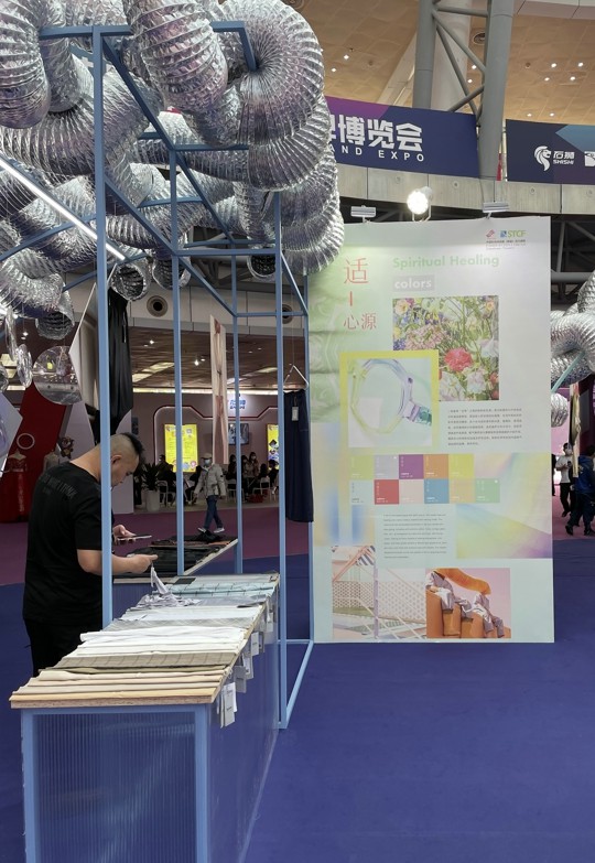 本次2022春夏中國時尚休閑裝(褲裝)流行趨勢發布以“新生”為核心概念,通過對生活方式和消費理念的動態發展進行全方位解讀,將來自139家企業的約七百款面輔料和褲裝產品按照材質、色彩、圖案、功能等特點分別呈現于“物真境、適心源、共自然、幻造化”四個趨勢主題區域中,全面展示石獅作為國內重要褲業產業集群的風采。