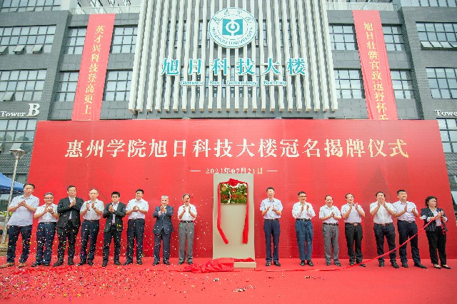 日前,投資3.48億元的惠州學院旭日科技大樓正式冠名揭牌。惠州市政協原主席湯聘輝,惠州學院原黨委書記陳優生、李秀峰、楊海濤,原副校長史義民,學院現任黨委書記兼校長彭永宏教授及領導班子成員,旭日集團副董事長兼總經理、真維斯國際(香港)有限公司董事長楊勛,真維斯國際(香港)有限公司董事兼副總經理劉偉文等出席參與了此次儀式。