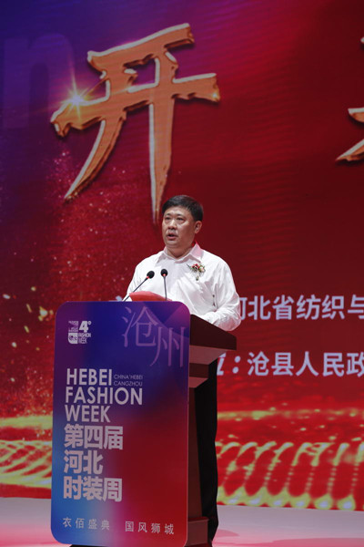 滄縣縣委書記楊猛上臺致辭表示,在舉國歡慶中國共產黨成立100周年之際,第四屆河北時裝周再次約定獅城、花落滄東,充分體現了省工信廳、省服裝行業協會以及市委、市政府對滄縣的關懷厚愛,必將為滄縣服裝產業的崛起插上騰飛翅膀,也日益成為滄縣展現時尚之都風采的靚麗名片。希望以此次服裝盛會為平臺,進一步豐富展會業態,更好地搭建起滄縣溝通全國、對話世界的橋梁,共同打造世界服飾時尚之都。