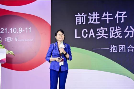 廣東前進牛仔布有限公司董事、總經理王宗文進行了LCA實踐分享,講述了前進牛仔的綠色發展歷程,可持續發展的經驗和心得以及LCA項目的收獲。她表示,“讓牛仔成為最環保的面料之一”是前進牛仔可持續發展的目標。多年來,前進牛仔從紗線的研發,設備的創新、原料的選用、工藝設計都圍繞著綠色減碳,環保創新的目標開展,拿到了一系列的環保資質認證。公司成立減碳小組研究碳排放,加入“3060計劃”,參與中紡聯社責辦的 LCA碳足跡跟蹤。2021年8月6日,在中國紡織工業聯合會社會責任辦公室的支持下,啟動了“前進X天絲™牛仔產業鏈零碳行動”,在自身影響范圍內,采取行動積極推動行業綠色升級,打造可持續時尚牛仔產品。