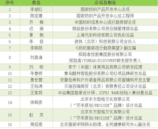 第47屆(2023春夏)中國流行面料入圍評審專家委員會成員