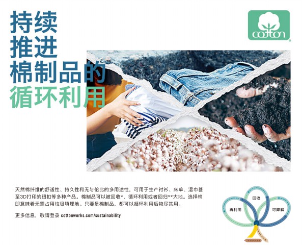 談及一株棉花的可持續(xù)生命周期,林蓓指出,從種植到回收,棉制品能實現(xiàn)循環(huán)利用,可持續(xù)性使其成為品牌和制造商的首選。一方面,以100%棉纖維制成的紡織品可以回收用于制造各種新產(chǎn)品,當(dāng)無法再利用或回收后,棉纖維也可在工業(yè)堆肥和水環(huán)境中降解,而且降解速度快于人造絲和油基合成纖維等人造纖維素纖維,最終,在某些條件下的分解過程中,棉花可以回歸大地;另一方面,制作精良的棉質(zhì)服裝更加經(jīng)久耐用,非常適合蓬勃發(fā)展的二手市場,從而實現(xiàn)多次重復(fù)利用。