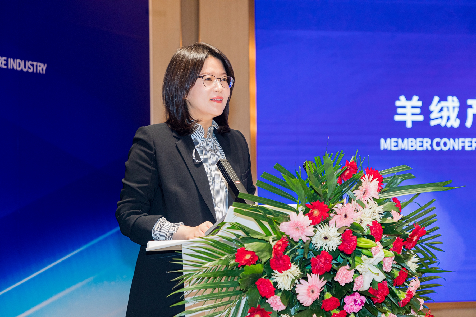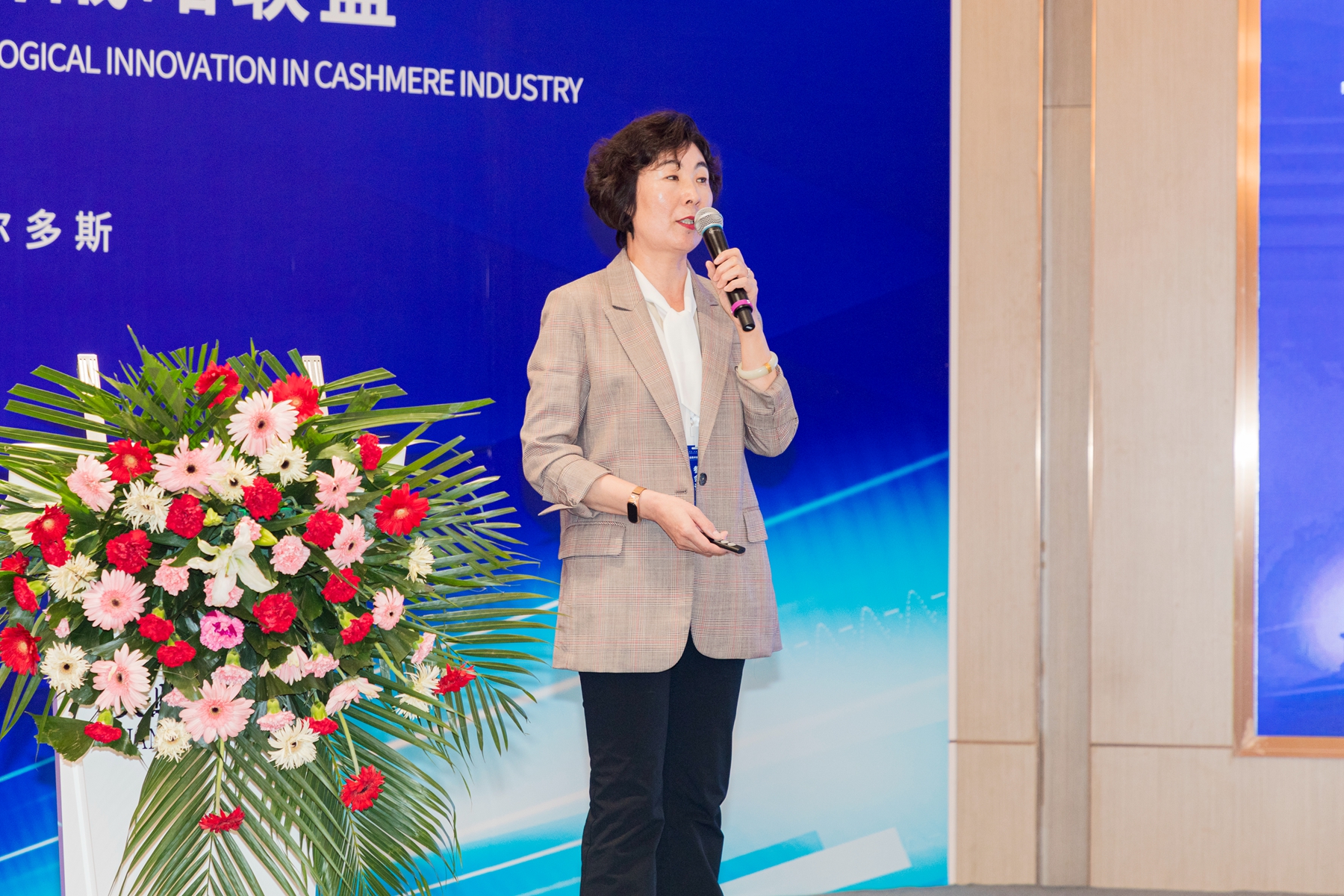 全國紡織品標(biāo)準(zhǔn)化技術(shù)委員會羊絨制品分技術(shù)委員會秘書長朱虹做了《山羊絨檢測與標(biāo)準(zhǔn)發(fā)展趨勢及挑戰(zhàn)》的主題分享。
