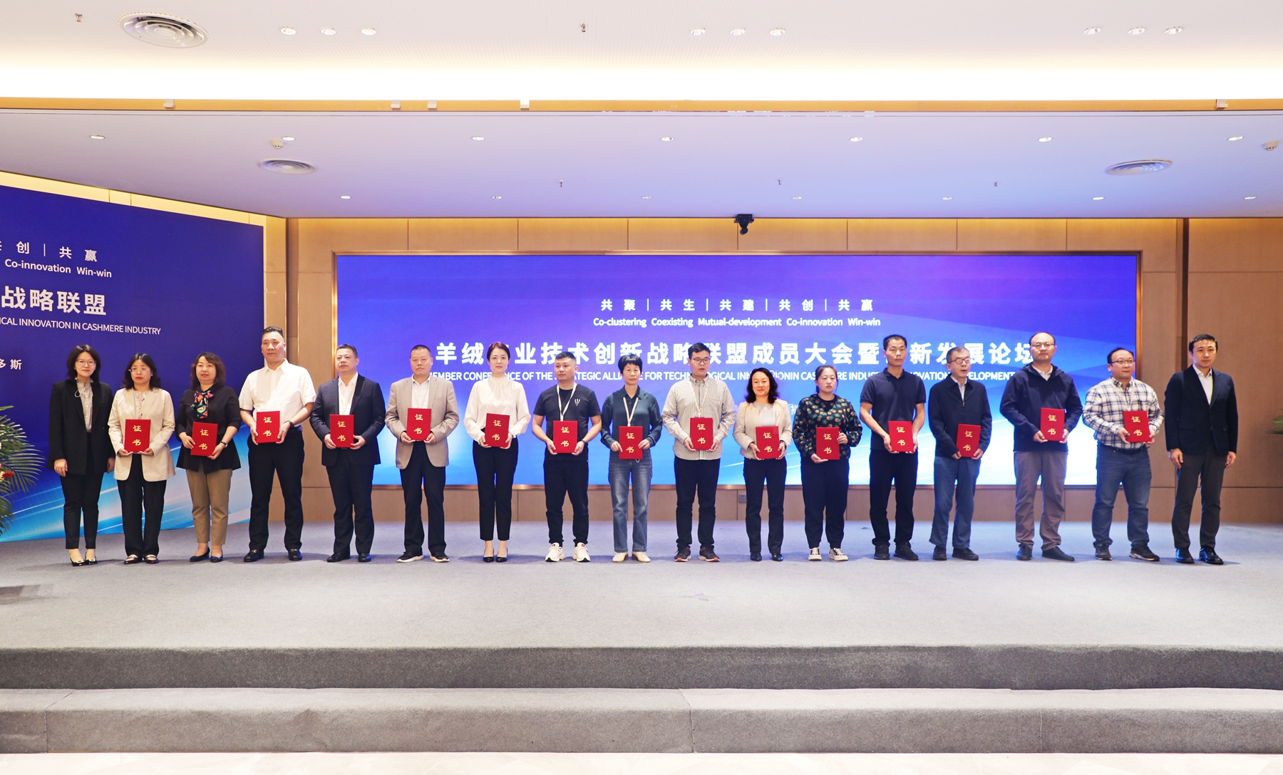 大會為第一屆羊絨產(chǎn)業(yè)技術(shù)創(chuàng)新戰(zhàn)略聯(lián)盟成員單位頒發(fā)了證書。