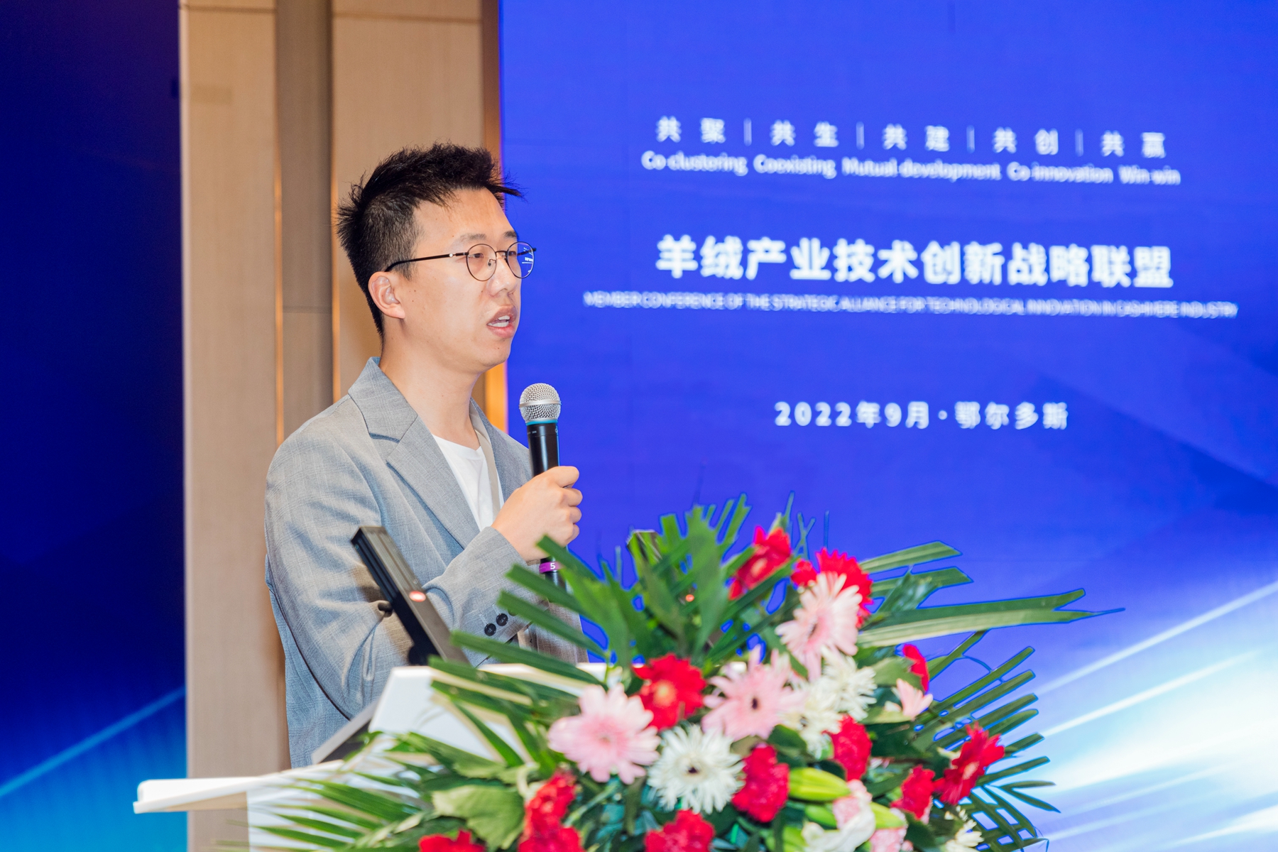 羊絨產(chǎn)業(yè)技術(shù)創(chuàng)新戰(zhàn)略聯(lián)盟副理事長劉焱在會上宣布羊絨產(chǎn)業(yè)技術(shù)創(chuàng)新戰(zhàn)略聯(lián)盟正式成立,并宣讀理事會決議。
