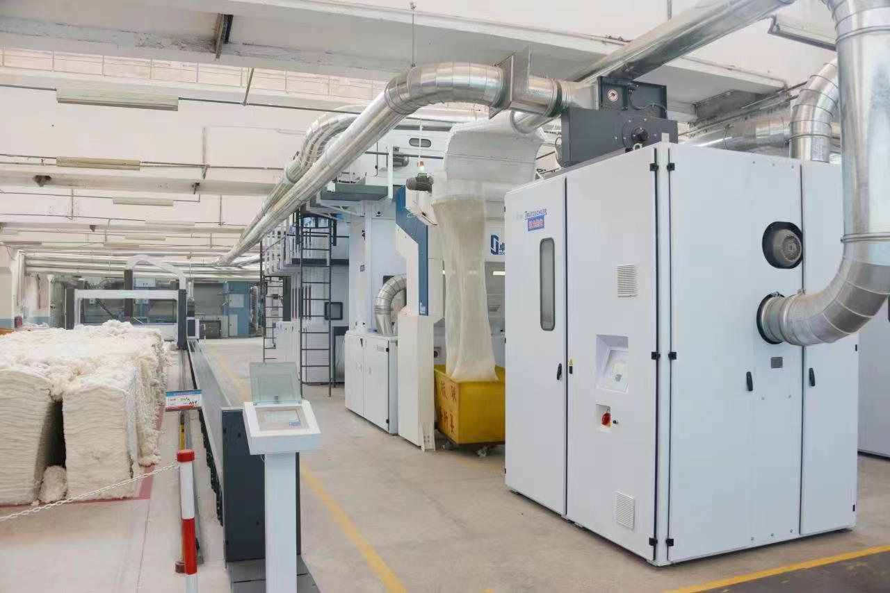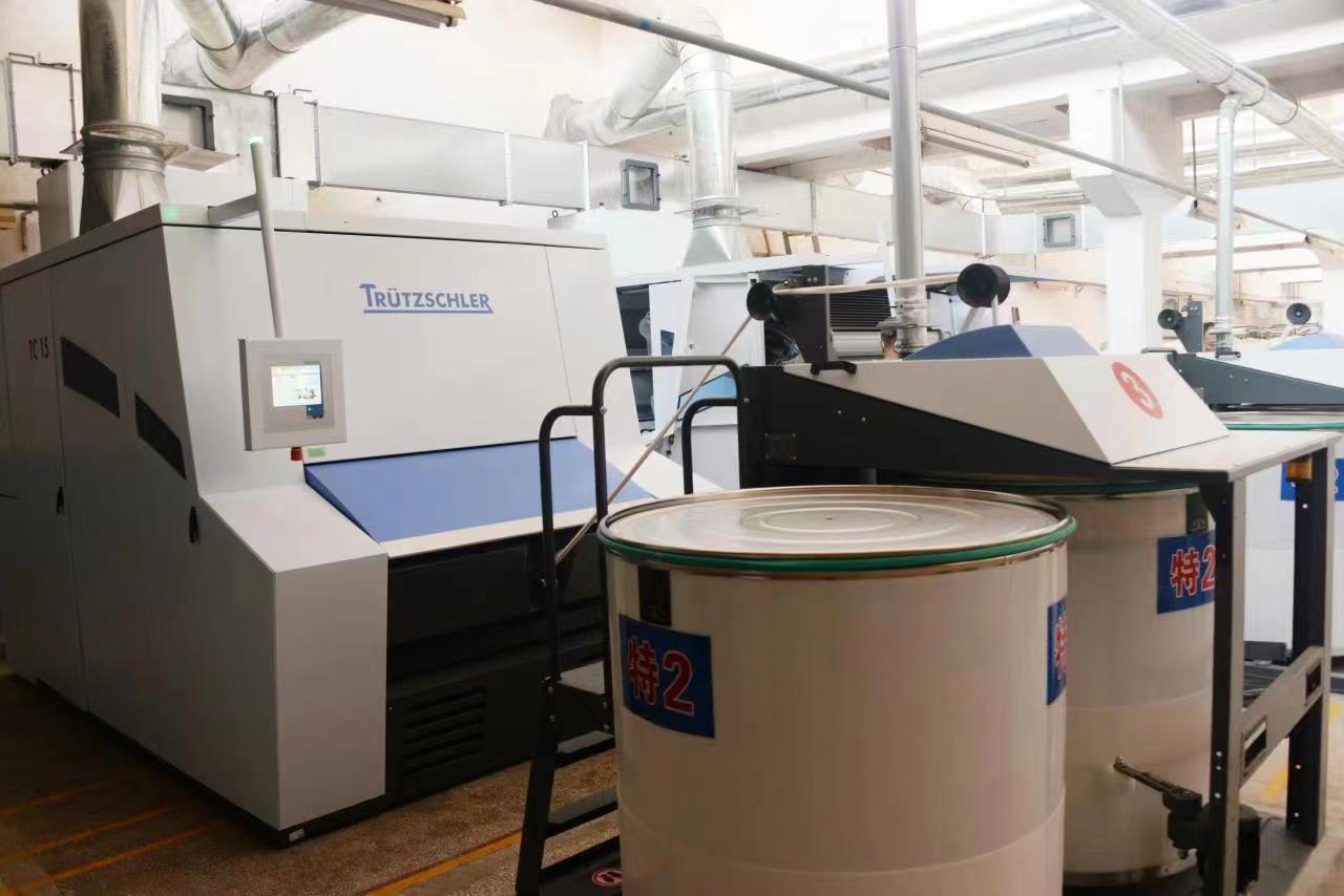 先進(jìn)的設(shè)備是企業(yè)高質(zhì)量發(fā)展的“發(fā)動(dòng)機(jī)”。際華三五零九公司以“干特色紡織 做百年軍企”為企業(yè)愿景,以“打造功能性特色紗線和高檔面料的一流供應(yīng)商”為企業(yè)目標(biāo),加強(qiáng)硬件與軟件的同步跟進(jìn),先后引進(jìn)一批先進(jìn)紡織及配套設(shè)備,擁有世界上最先進(jìn)的卓目異纖檢測(cè)機(jī)、瑞士?jī)?yōu)析異纖檢測(cè)機(jī)、特呂茨勒清梳聯(lián)生產(chǎn)線、賜來福A9氣流紡紗機(jī)、立達(dá)高速并條機(jī)、TH495高速粗紗機(jī)、自動(dòng)絡(luò)筒機(jī)、自動(dòng)落紗機(jī)、自動(dòng)穿筘機(jī)、AD小車等國(guó)內(nèi)外先進(jìn)設(shè)備,噴氣織機(jī)實(shí)現(xiàn)了190cm、230cm、280cm、340cm四種幅寬的面料產(chǎn)品全系列生產(chǎn)。特別是7臺(tái)全新的德國(guó)賜來福A9氣流紡機(jī),每臺(tái)長(zhǎng)近70米528錠,為利潤(rùn)增長(zhǎng)提供了不竭動(dòng)力。